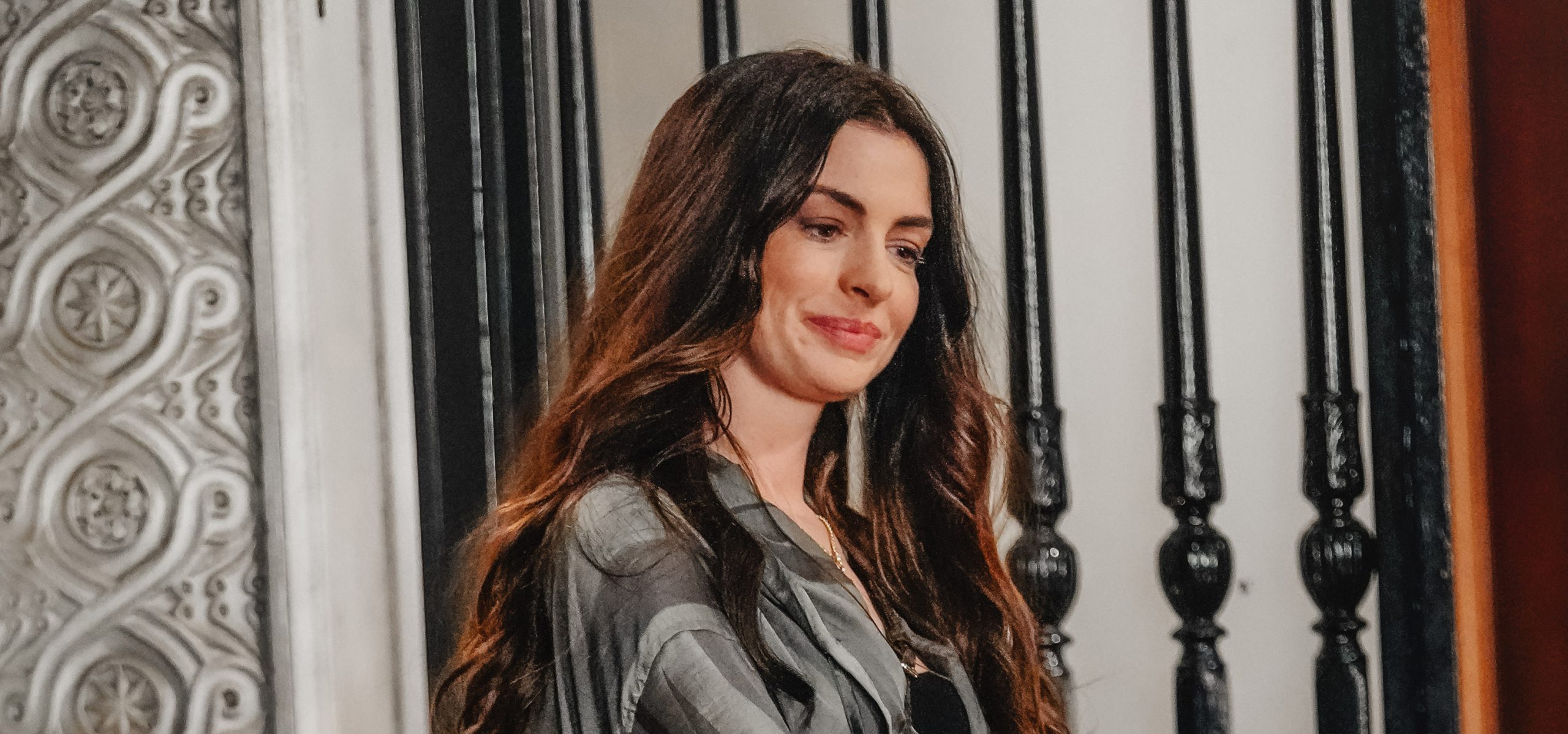 Anne Hathaway sfoggia un look pratico e chic in The Devil Wears Prada 2.