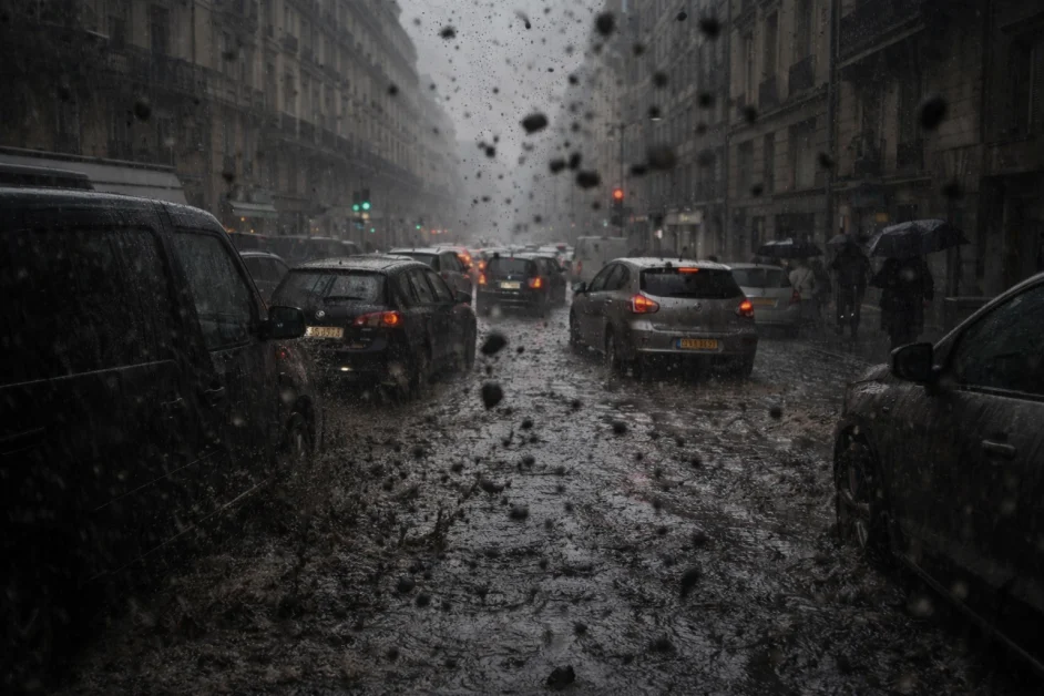 L’esperienza di chi vive nella capitale è stata descritta come “apocalittica”, con auto, balconi e strade coperti di fuliggine e segni scuri lasciati dalla pioggia contaminata.