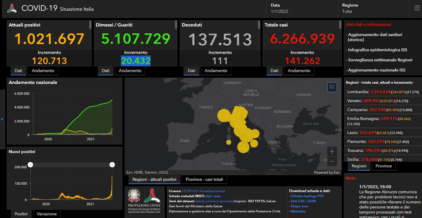Covid, in Italia 141.262 nuovi casi e 111 decessi