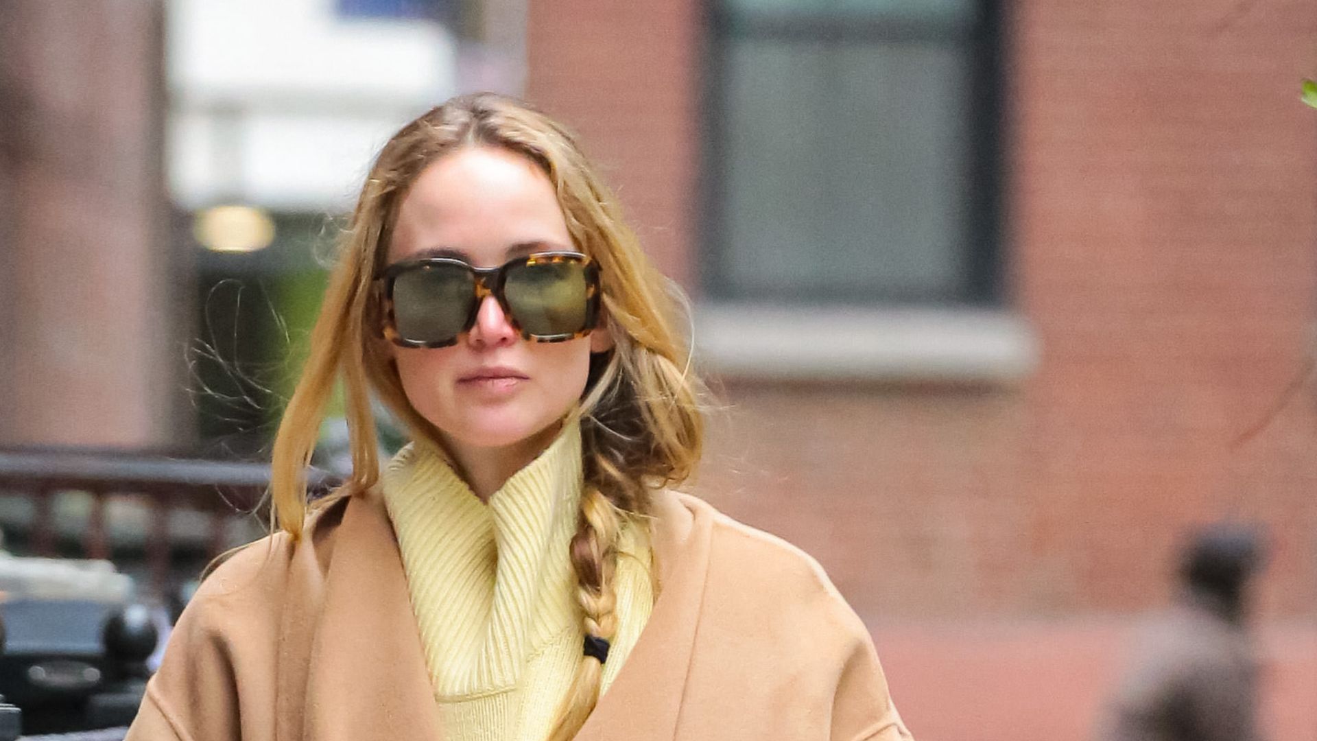 Jennifer Lawrence: il cappotto di cammello e le Adidas Gazelle, must-have per l’autunno.