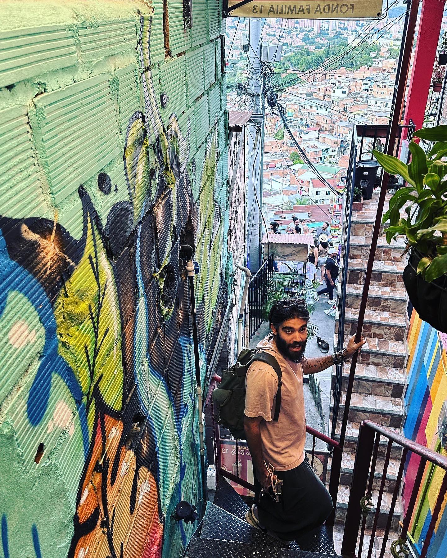 Il riscatto di Medellin, un tempo non troppo lontano la città più violenta del mondo, parte soprattutto da qui. Dal riscatto urbano e sociale di quello che è stato il quartiere teatro di conflitti sanguinosi tra gang, esercito, gruppi paramilitari, milizie popolari e molti altri attori. Soprattutto, è stato il luogo in cui povertà e diseguaglianze sociali rendevano facile l’arruolamento di giovanissimi nel narcotraffico. Pablo Escobar, qui, trovava manodopera disposta a morire per il sogno di un riscatto sociale che pareva un miraggio. Ancora oggi si dice che in Colombia, per una famiglia, ci vogliano almeno 11 generazioni per uscire dalla povertà. E se l’ascensore sociale è ancora inchiodato, qui tra case in mattoncini rossi e tetti di lamiera, è stata costruita una lunga scala mobile che aiuta gli abitanti a salire e scendere, se non nella scala sociale almeno in quella che porta a casa e al lavoro. Comuna 13 è campi di calcio, murales disegnati da artisti geniali, locali panoramici in cui si balla ad ogni ora del giorno, guide locali che accompagnano i turisti nella difficile comprensione della storia di questa città e un’atmosfera di speranza gioiosa che guarda l’arte, la danza, lo sport, lo studio e il turismo come un’opportunità di sfidare un destino che pareva segnato. Certo, magari giri l’angolo e trovi ancora il volto di Pablo Escobar su muri e souvenir a ricordarti che puoi tagliare ma per estirpare ci vuole una semina tenace. Poi, peró, ti ricordi che qui nel vicino 2002 entrarono esercito e paramilitari con elicotteri che sparavano dall’alto (operazione Orion) per riprendere il controllo del quartiere e il risultato furono esecuzioni sommarie, desaparecidos, fosse comuni che nascondono ancora oggi morti senza nome. E che in così poco tempo il quartiere è diventato questo. Un posto in cui sopravvivono sicuramente violenza, povertà, diseguaglianza, in cui la salita è ancora tanta, ma oggi c’è una scala mobile. Per l’ascensore ci vorrà tempo, questo sì, ma intanto si serve una birra ai turisti che sono qui perché hanno visto Narcos su Netflix. E a quelli che vogliono capire dove va questa città. Questa gente.