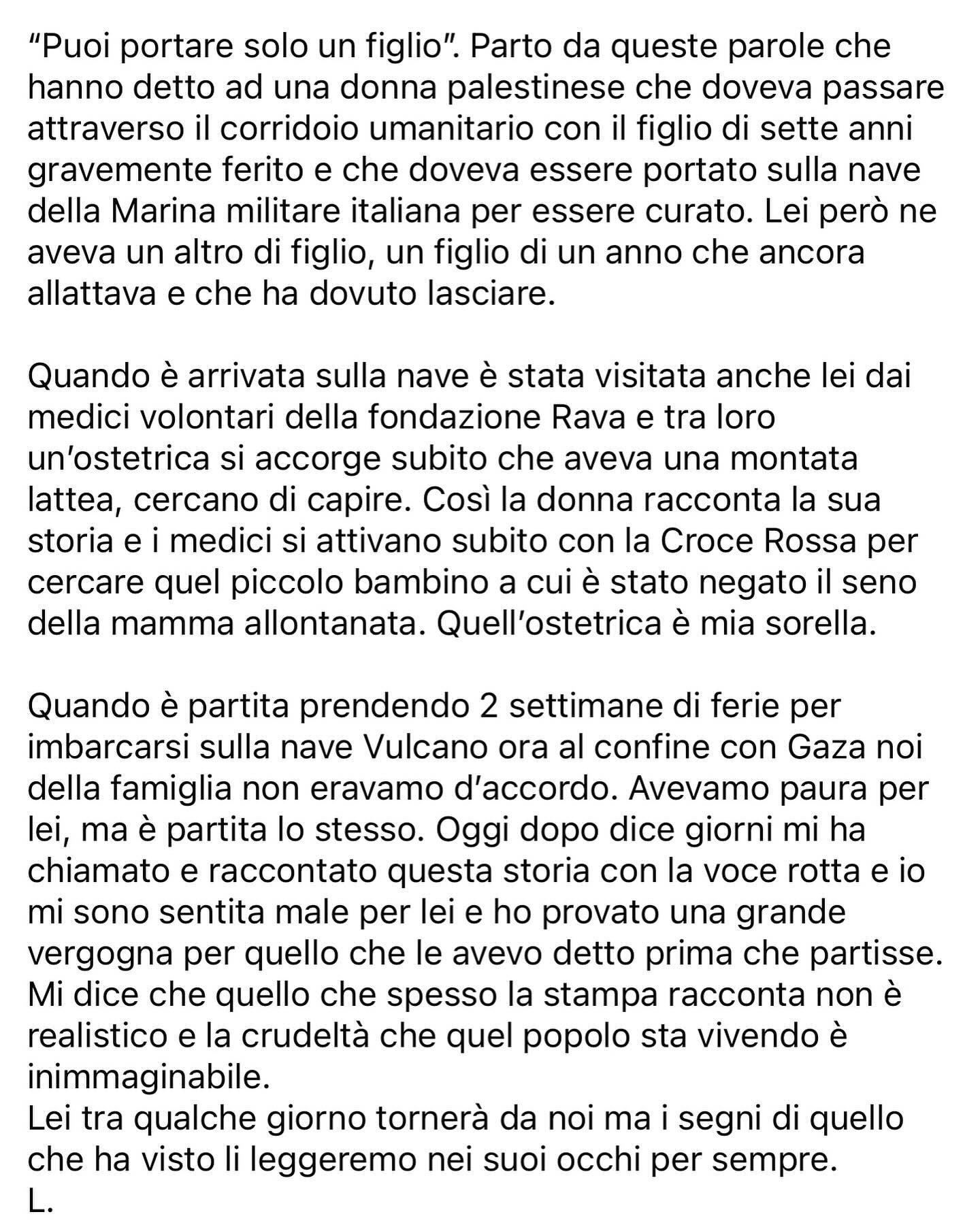 L’ho ricevuta oggi, da una persona con nome e cognome. So chi è la dottoressa, a cui va tutta la mia riconoscenza. Non le serve, ma voglio che lo sappia. E ovviamente va a tutto il personale sanitario e non sanitario che è lì con lei, sulla nave Vulcano, ad aiutare la popolazione di Gaza. ❤️