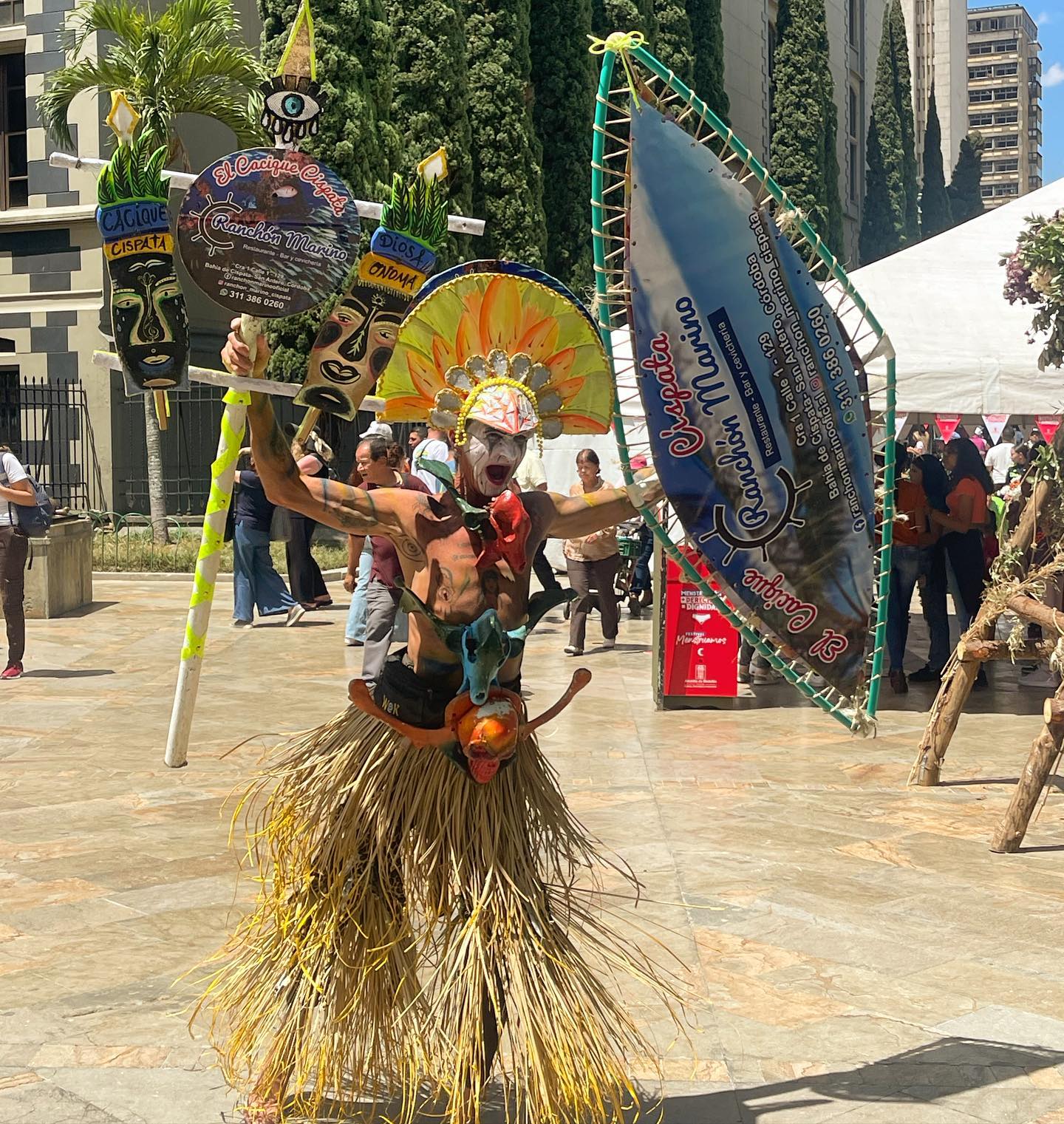Sta pubblicizzando un ristorante. Visto così sembrerebbe di carne umana, ma il cartello dice pesce.