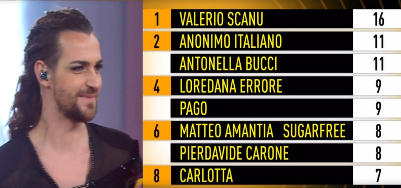 La classifica finale di questa sesta puntata vede Valerio Scanu al vertice, seguito da Antonella Bucci e Anonimo Italiano, che condividono la seconda posizione. Loredana Errore e Pago si posizionano al quarto posto, mentre Matteo Amantia, Scuderi Sugafree e Pierdavide Carone chiudono la classifica al sesto e ottavo posto rispettivamente. Questo risultato è significativo, poiché avvicina Scanu alla vittoria finale dell’edizione di quest’anno.